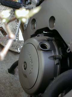 オイルが抜けたらドレンボルトを取りつけ、この穴から新しいオイルを注ぐ。ブラバの場合 オイルのみ交換は3.8L、エレメントも交換の場合 3.9L。あとはゲージを見ながら大体の感覚で・・・。以上で終了。