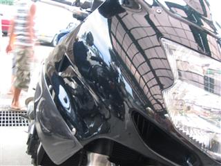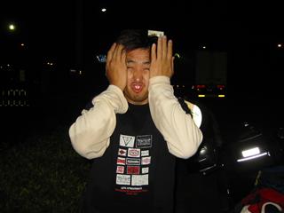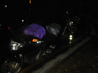 | この写真、所沢ICおりたとこ。やっとっすよ。生きてました…。 | ヨシ腹もなんとか無事で…。途中雨降りはビビったのか60〜70km/hしかださないので、ちと心配だった。 |