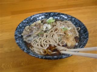 | 能登金剛を10:30ごろ出発したのにすでに20:30位。休んでは寝てを繰り返したらこんな時間に・・・。しかもまだ赤城付近 | 昼間まったく食欲が無かったがようやくお腹が空いてきたので舞茸そばをたべる。空腹にしみた。あったまった。ちなみに雨降りの山の中は走るとかなり寒い。 |