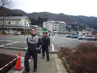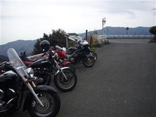 | 山道を登り、以前寄った休憩ポイントにまた来た。前回と違いほとんど他のバイクはいなかった。まだ寒いせいだろうか・・・ | 02氏は休憩のたびにションベンタイム。これもまた寒いせいだろうか・・・ |