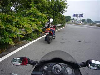 | 久しぶりにtony氏一同が集合のツーの企画が雨天中止となってしまった・・・。J氏に連絡すると、どこかに行くかという話になり 02氏も誘い 3台での「雨天中止の仇とったるでツー」を慣行。 |