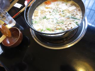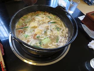 6人前のほうとうを3人前ずつ大鍋にわけてもらう。おいしいほうとうでした⇒いいね!(facebook風)